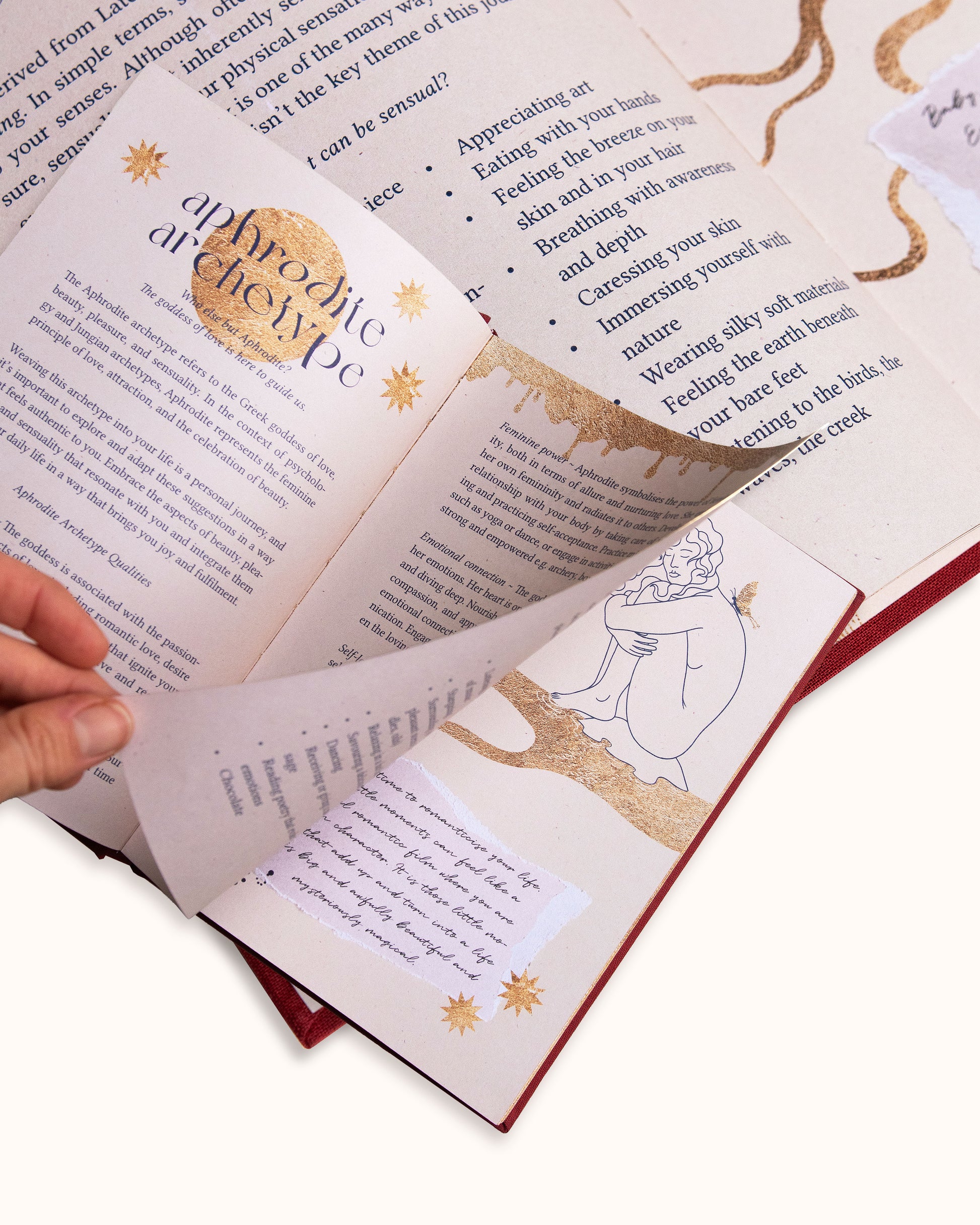 Dagbók Afródítu er fallega skreytt með gullfilmu og er full af unaðsathöfnum, seiðandi leiðbeiningum og daglegri sjálfsástardagbók. Á þessum hraða tíma sem við lifum á gleymum við oft að njóta augnabliksins. Við hugsum um morgundaginn og framtíðina, en erum ekki hér og nú með okkur sjálfum. Við höfum aftengst líkama okkar, vinnum núna svo við getum slakað á seinna - um helgina, í sumarfríiinu eða þegar við erum orðin gömul.