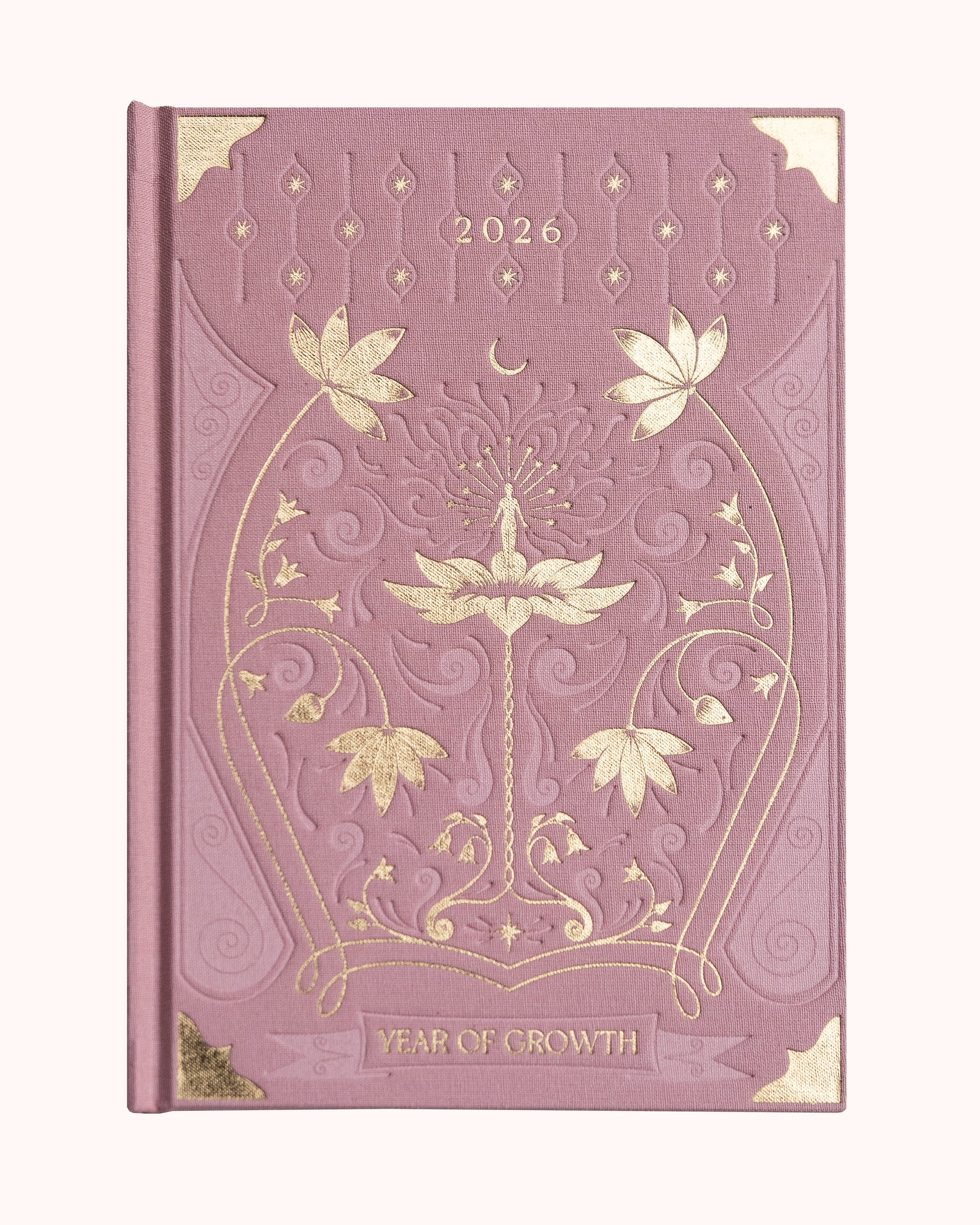 2026 Year of Growth - er dagbók sem leggur áherslu á núvitund, stjörnuspeki, þakklæti, ásetning, sjálfskoðun, sköpunarkraft og eigin vöxt sem orkuveru.