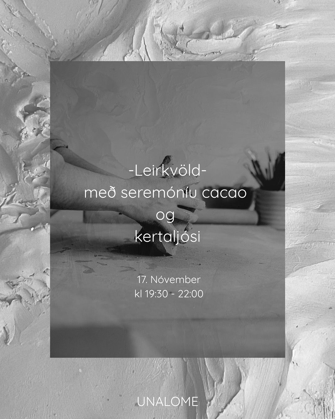Innifalið í verði: Leir, verkfæri, 2 brennslur, glerjun, leiðsögn, seremóníu cacao.